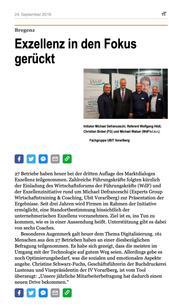 6. Oktober 2019 – Presse: Menschenorientiert und exzellent führen. Bericht im Karriereteil der Vorarlberger Nachrichten