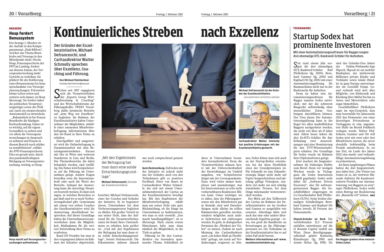 1. Oktober 2021 – Presse: Kontinuierliches Streben nach Exzellenz. In NEUE Vorarlberger Tageszeitung vom 1.10.2021, S.20f